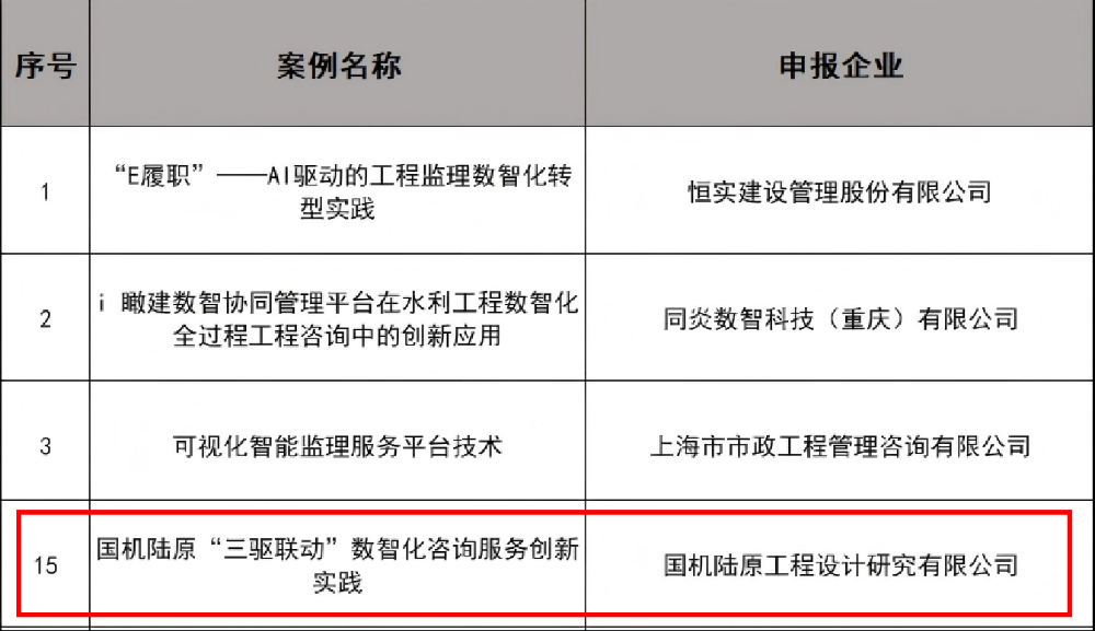 國(guó)機(jī)陸原“三驅(qū)聯(lián)動(dòng)”數(shù)智化實(shí)踐 榮獲第二屆“工程監(jiān)理咨詢(xún)企業(yè)創(chuàng)新實(shí)踐卓越案例”